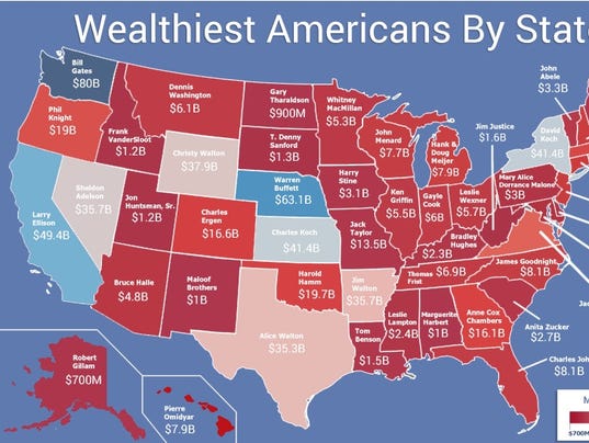 The "poorest" rich person in the country, Alaska's Robert Gillam, has a paltry $700 million.